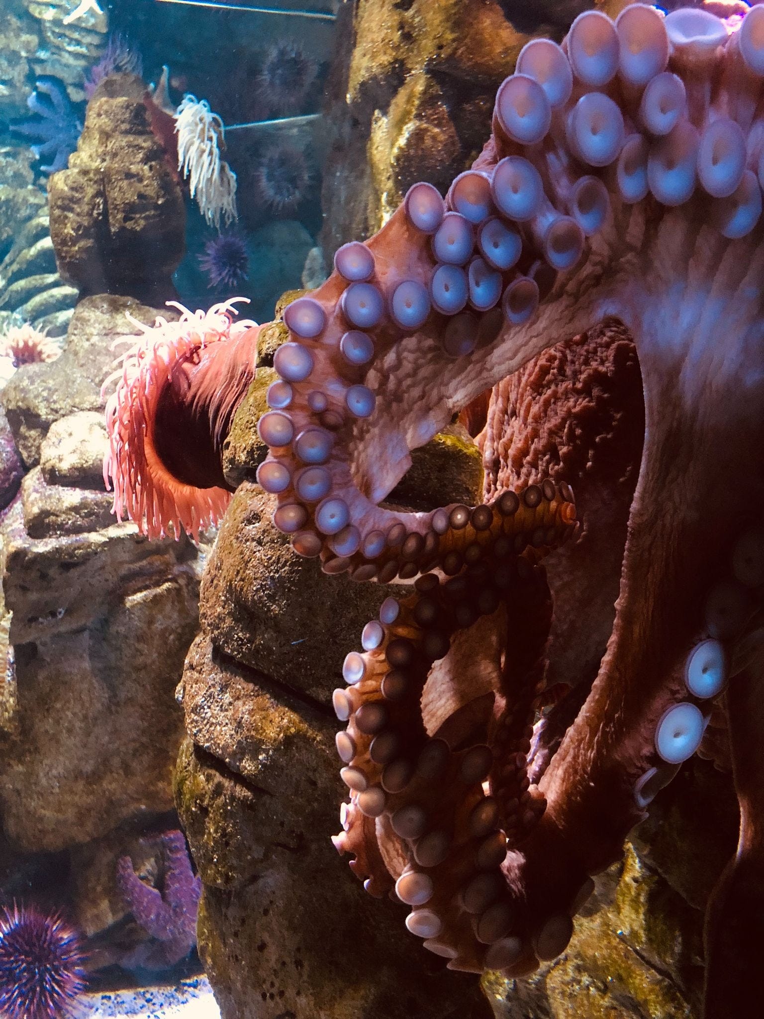 The octopus is an enigmatic creature, and they’ve proven notoriously hard to investigate in lab studies. They’re solitary and can’t be housed together or they will fight. They’re incredible at escaping confinement and can fit through very tiny spaces. Inky, a basketball-sized octopus in a tank at the National Aquarium of New Zealand, made national news when he, in the words of NPR, “squeezed through a slight gap at the top of his tank, flopped to the floor, then slithered about 8 feet overland to slide down a drainpipe more than 160 feet long and, finally, to plop into the bay.” Never to be seen again.